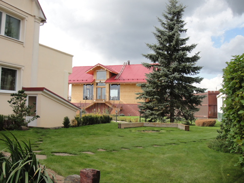 Стоянка, окруженная елями, находится перед домом. Мест хватит для всех ваших гостей, её вместимость до 20-ти машин.
